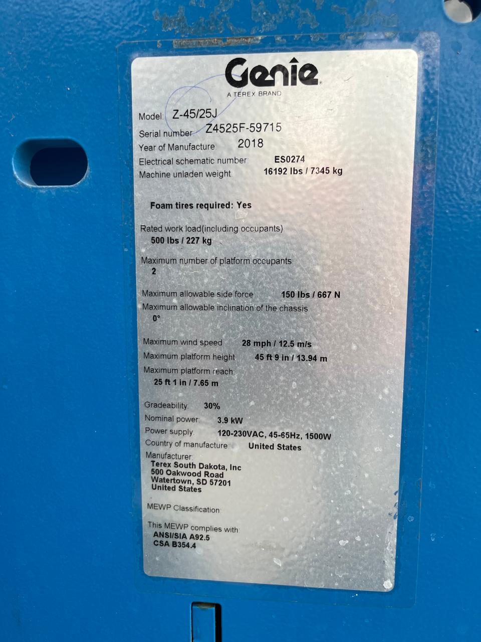 Plataforma articulada eléctrica Genie z45/25 DC 2018