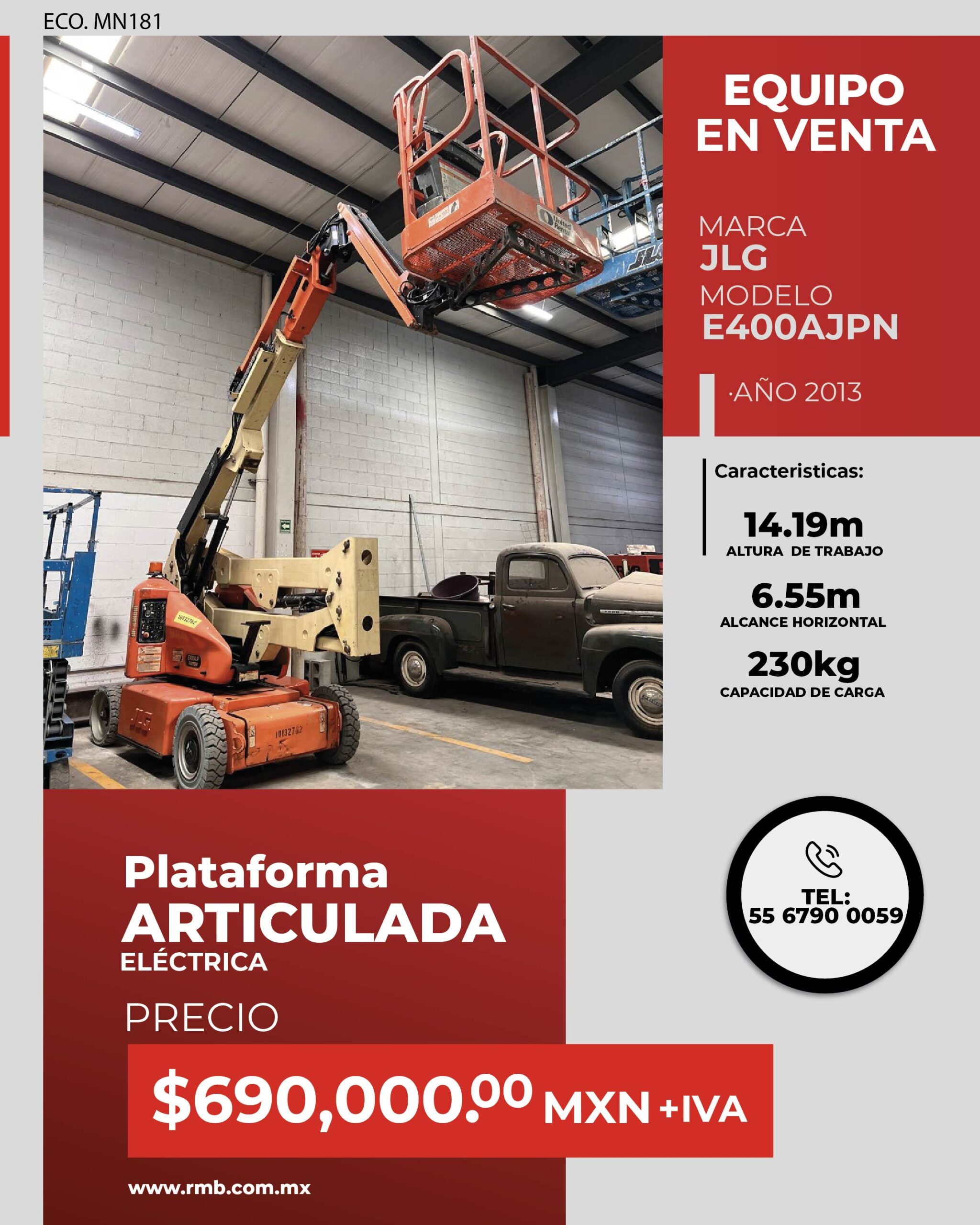 Optimiza tus trabajos en altura con la plataforma articulada eléctrica JLG E400AJPN, ideal para construcción, mantenimiento industrial y trabajos en interiores. Su diseño compacto y cero emisiones la convierten en la mejor opción para espacios reducidos y entornos sensibles.