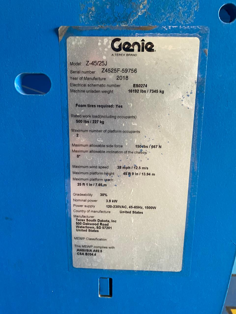 Plataforma articulada eléctrica Genie Z34/ 22N 2017