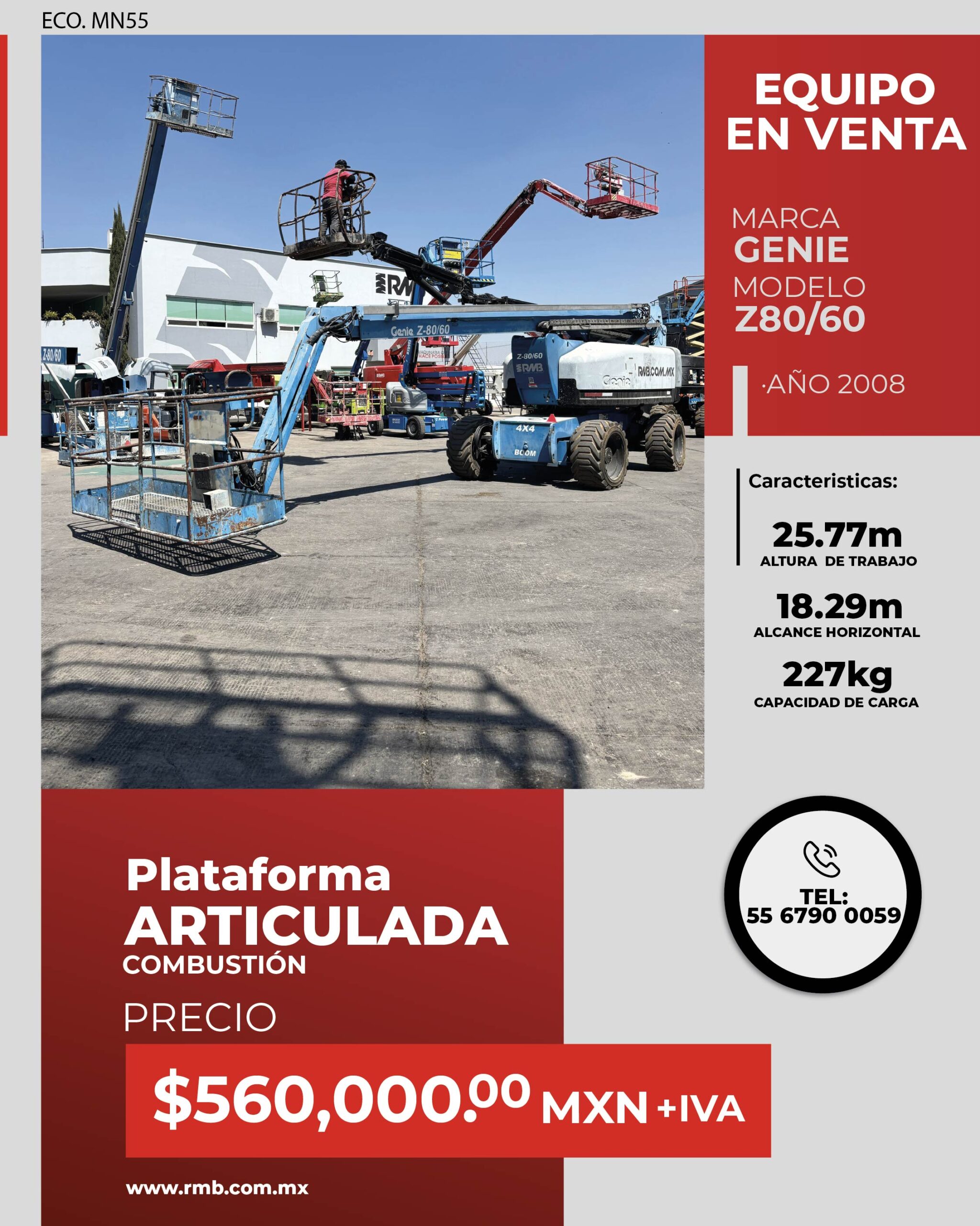 Si buscas plataformas articuladas en venta en México, esta Genie Z80/60 es una opción estratégica para incrementar la productividad y seguridad en obra.
