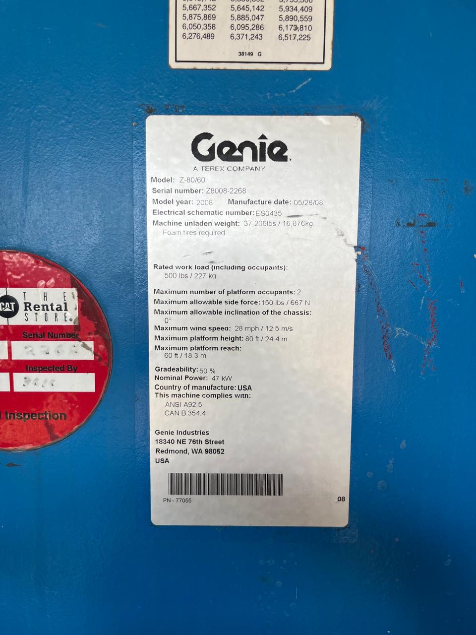 Potencia, alcance y rendimiento en un solo equipo. La Plataforma Articulada de Combustión Genie Z80/60 2008 es la solución ideal para trabajos en altura que requieren máxima maniobrabilidad y alcance horizontal.