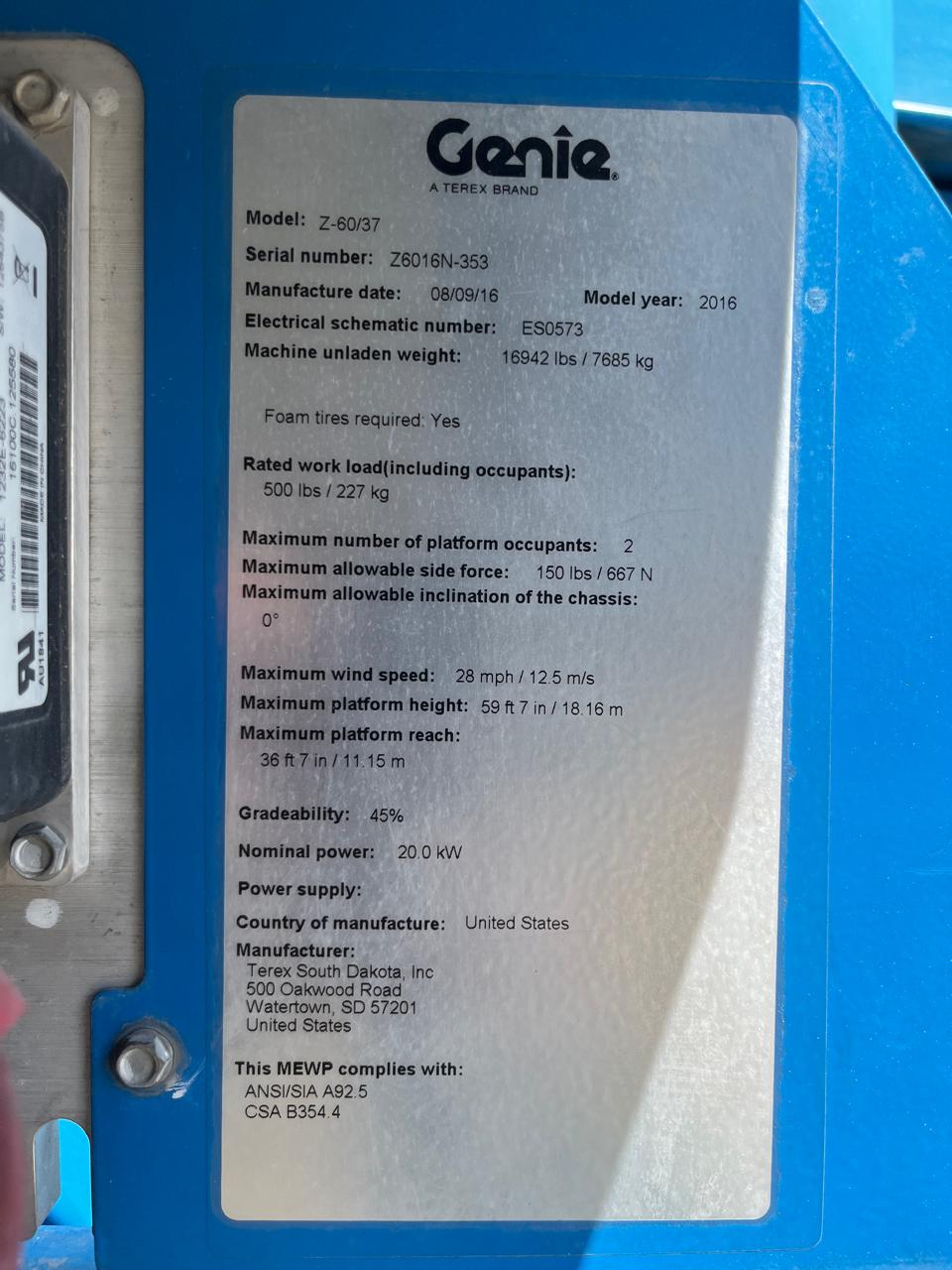 Plataforma Articulada Híbrida Genie Z60/37 FE 2016
