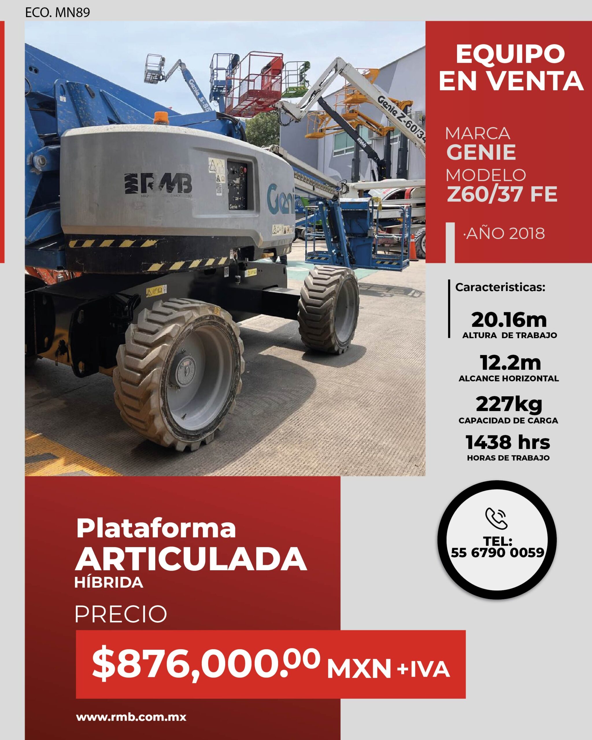 Plataforma articulada híbrida Genie Z60/37 FE 2018 en venta en México